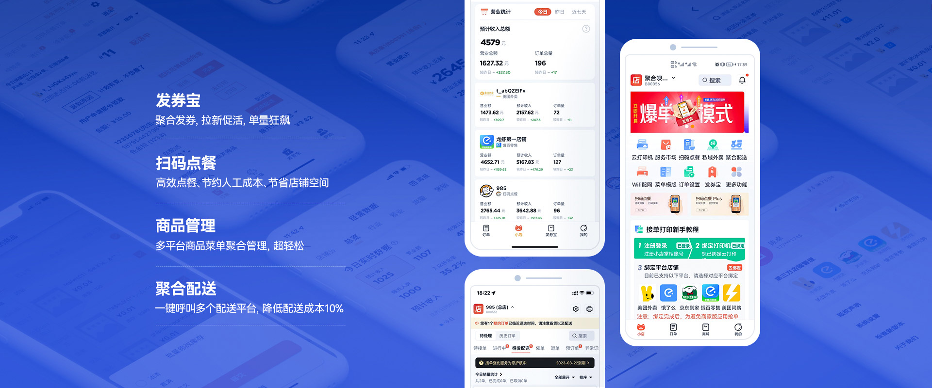 聚合多個外賣平臺,統一管理商品庫存,自動接單、自動打印、自動估清,小店掌柜菜單模板可一鍵同步至多平臺,大量減少人力物力成本。